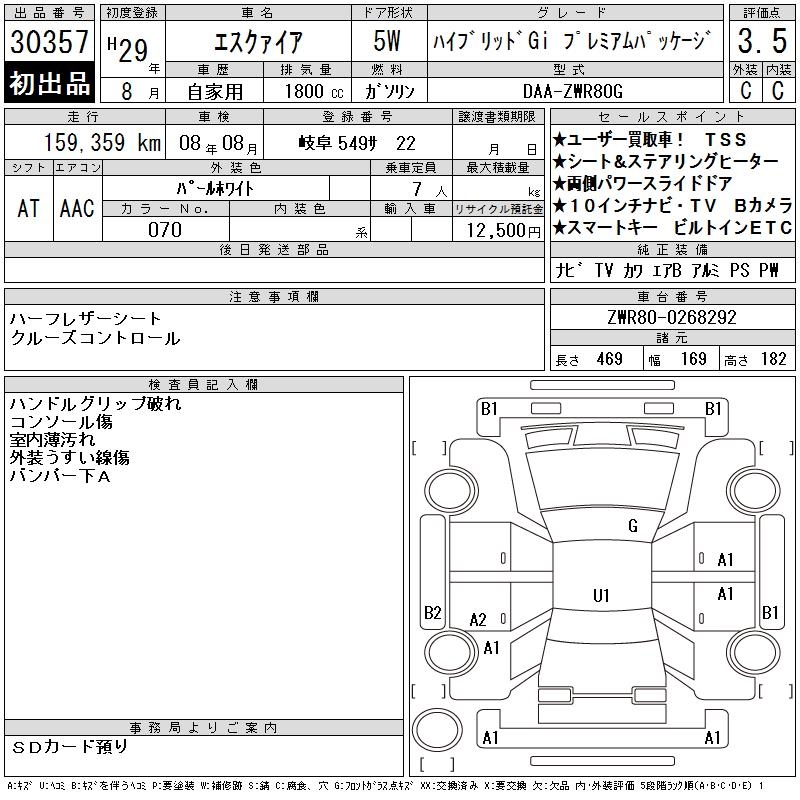 TOYOTA ESQUIRE HYBRID GI PREMIUM P - лот 30357