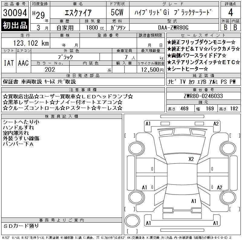 TOYOTA ESQUIRE HYBRID GI BLACK TERA DO - лот 30094