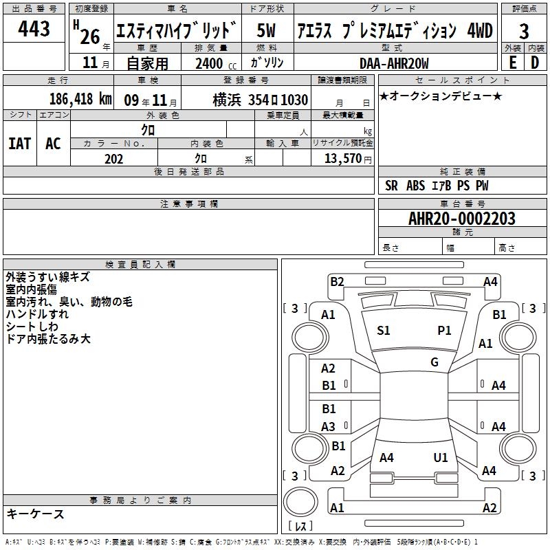 TOYOTA ESTIMA HYBRID - лот 443