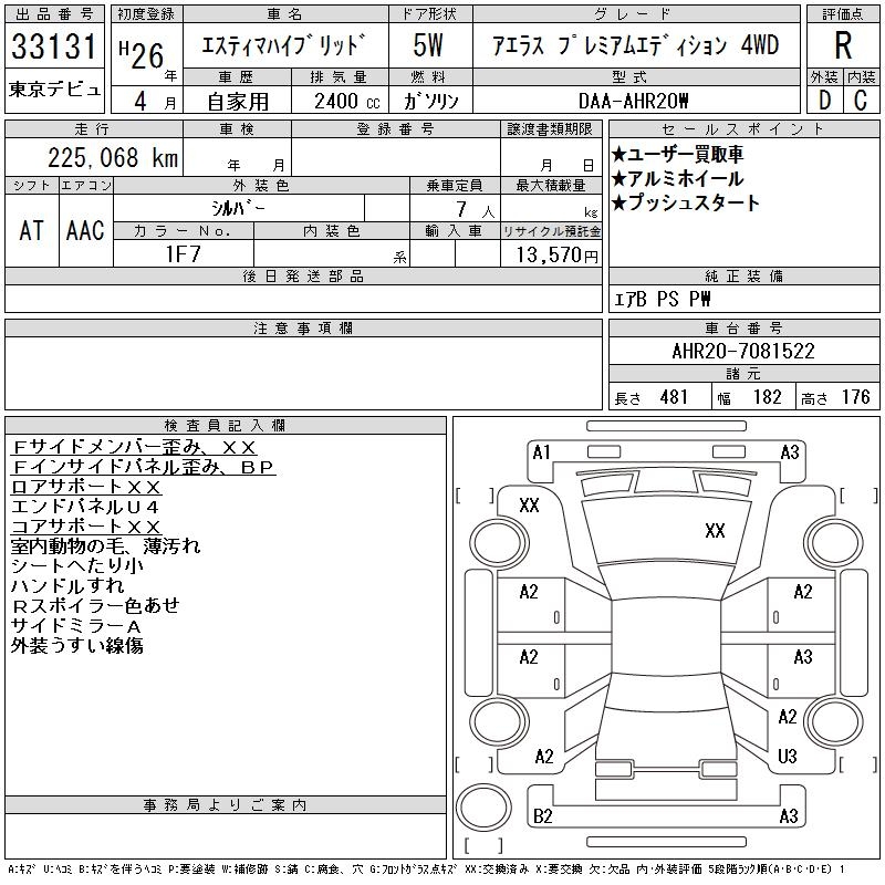 TOYOTA ESTIMA HYBRID - лот 33131