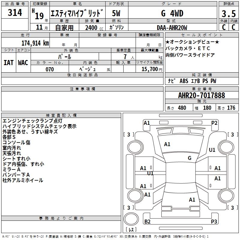 TOYOTA ESTIMA HYBRID - лот 314