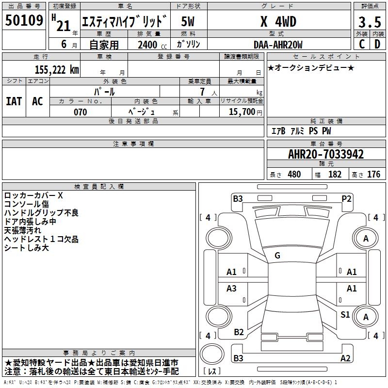 Все аукционы TOYOTA ESTIMA HYBRID