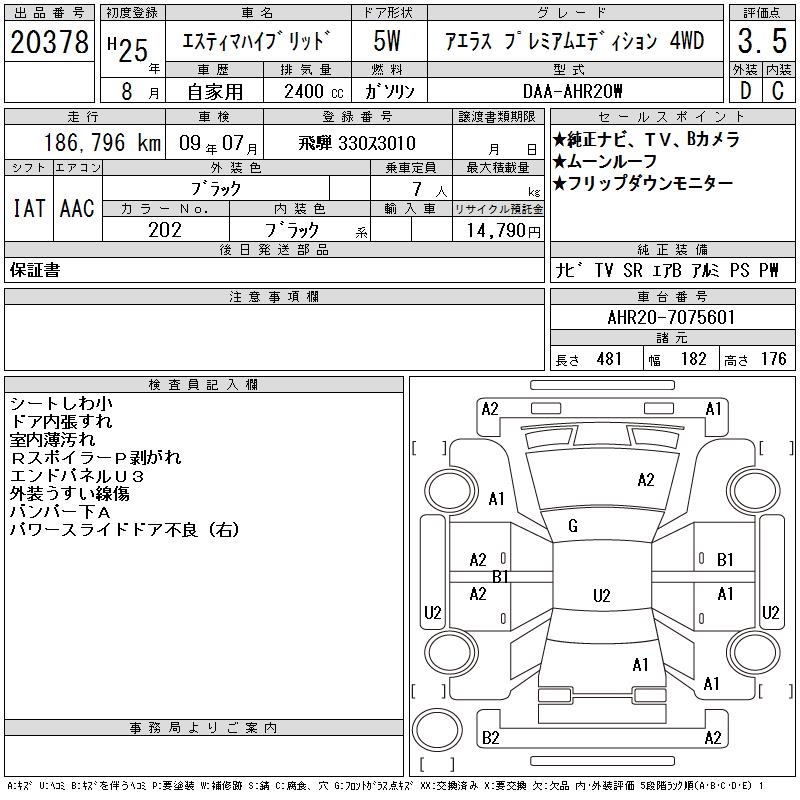 TOYOTA ESTIMA HYBRID - лот 20378