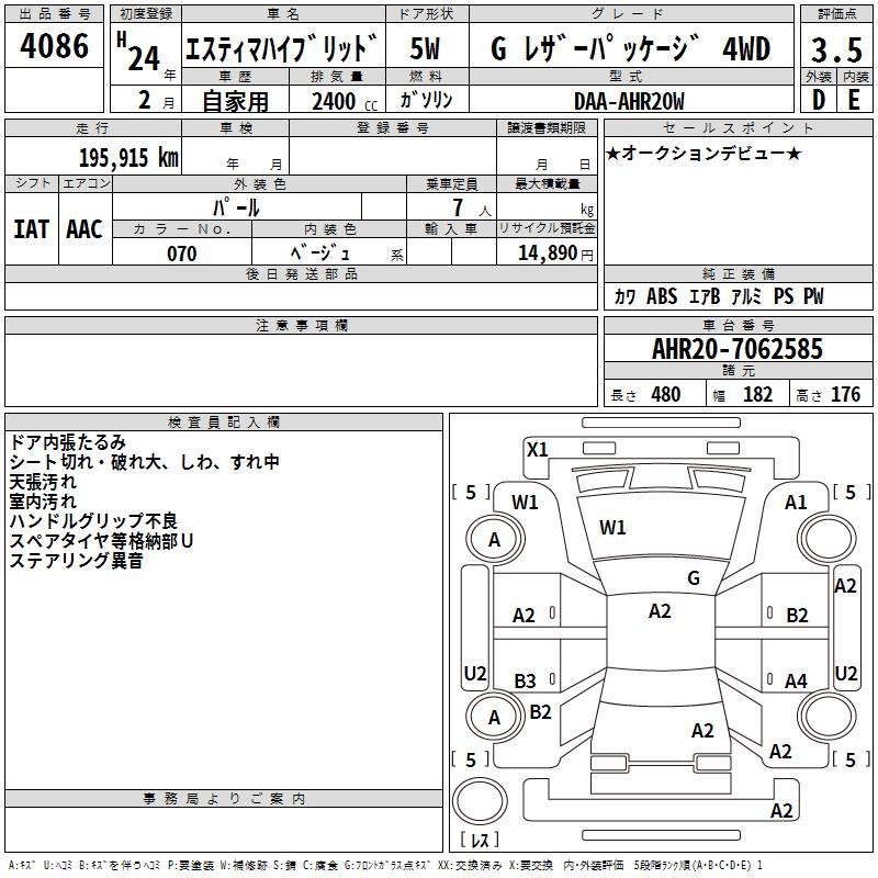 TOYOTA ESTIMA HYBRID - лот 4086
