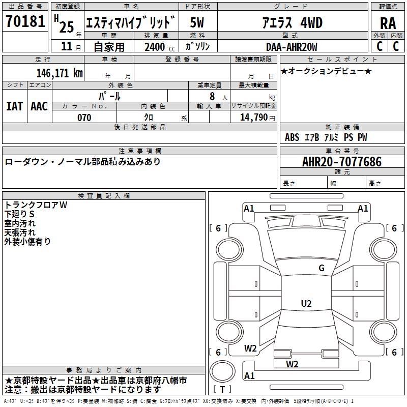 TOYOTA ESTIMA HYBRID - лот 70181