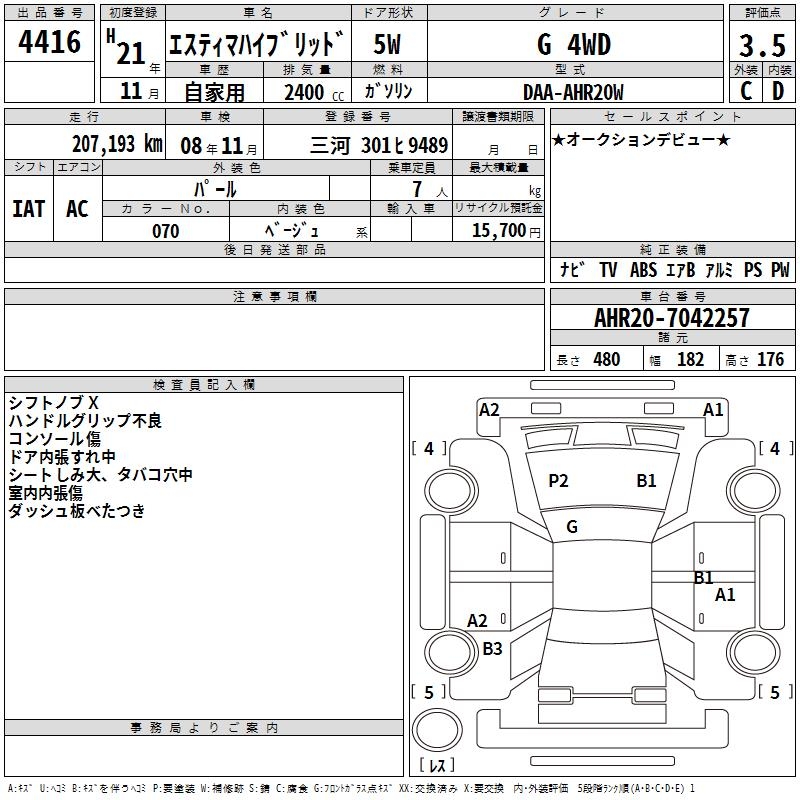 TOYOTA ESTIMA HYBRID G 4WD - лот 4416