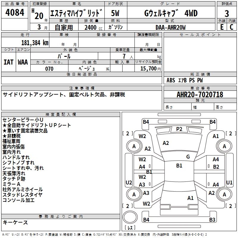 TOYOTA ESTIMA HYBRID G 4WD - лот 4084