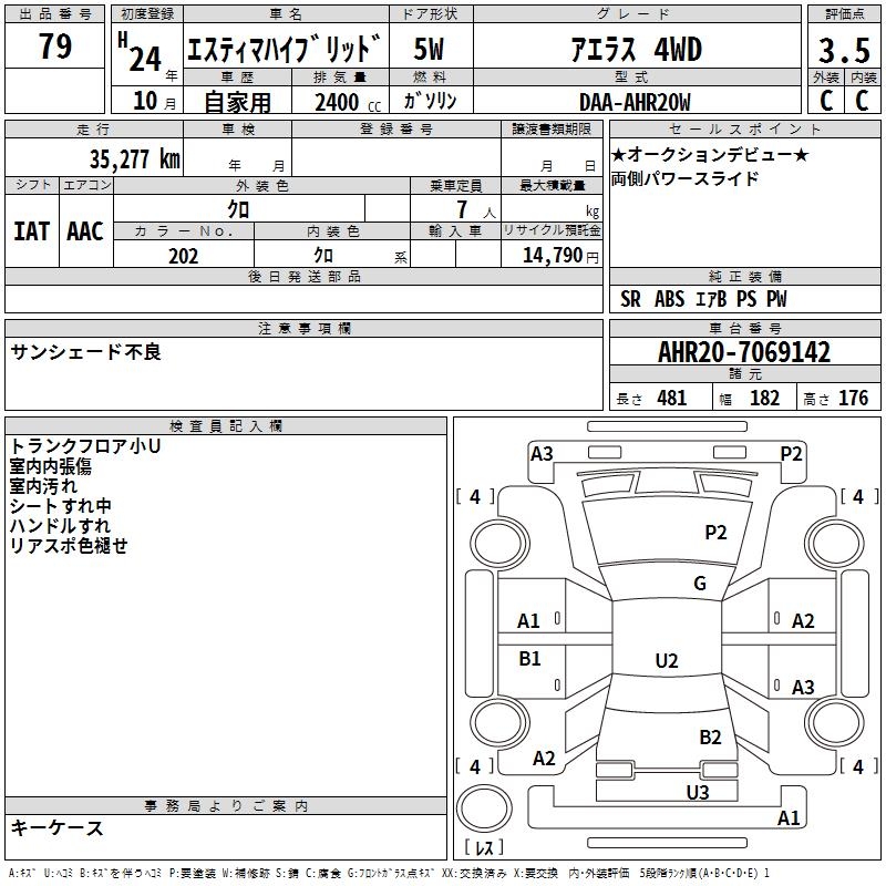 TOYOTA ESTIMA HYBRID AERAS 4WD - лот 79