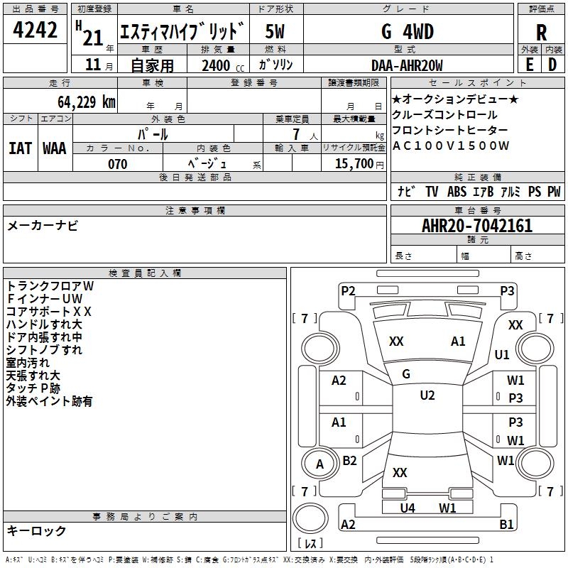 TOYOTA ESTIMA HYBRID G 4WD - лот 4242