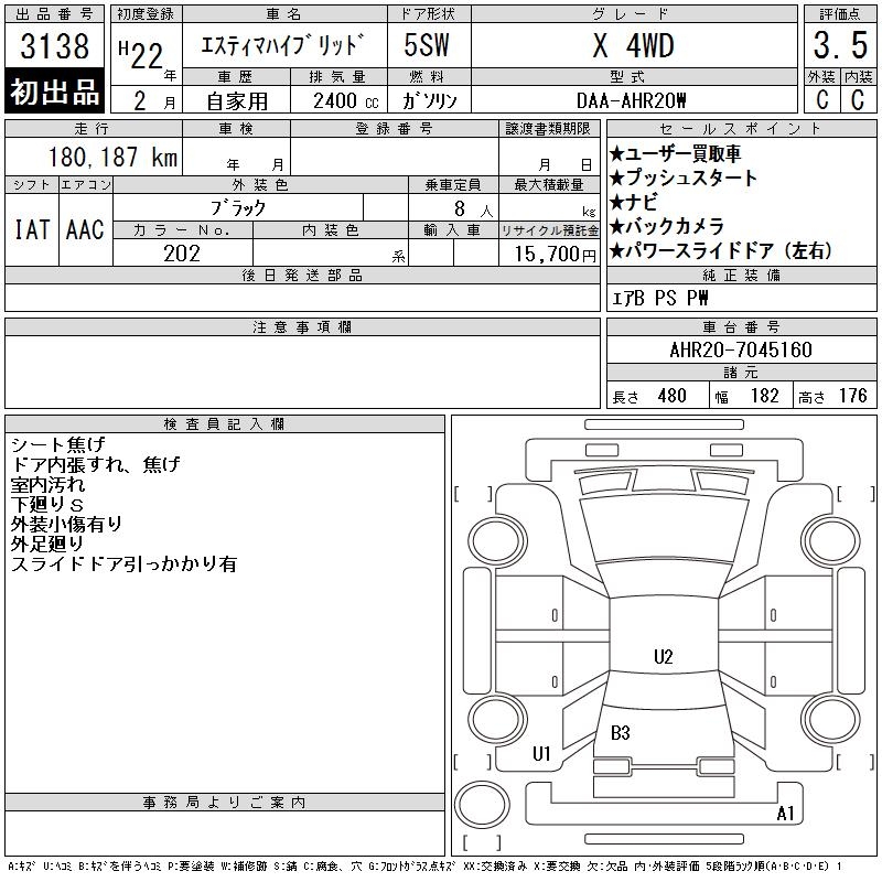 TOYOTA ESTIMA HYBRID X 4WD - лот 3138