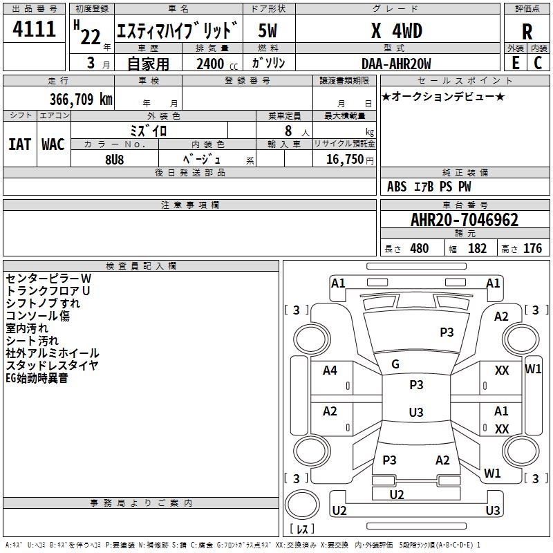 TOYOTA ESTIMA HYBRID X 4WD - лот 4111
