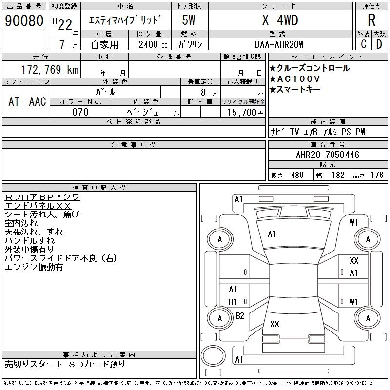 TOYOTA ESTIMA HYBRID X 4WD - лот 90080