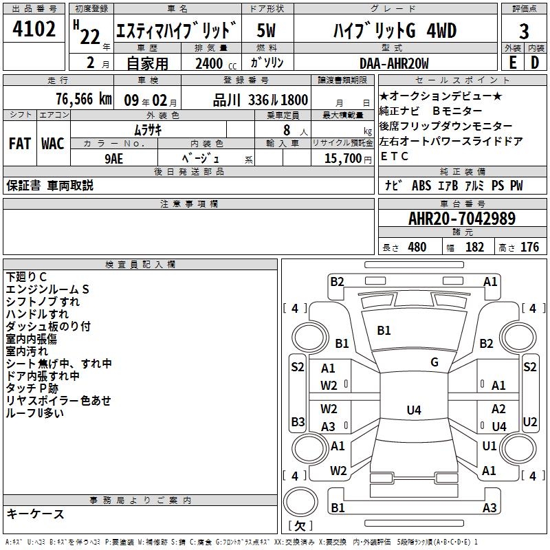 TOYOTA ESTIMA HYBRID HYBRID G 4WD - лот 4102