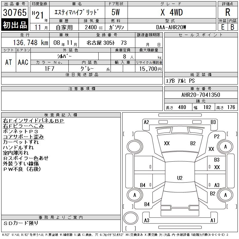 TOYOTA ESTIMA HYBRID X 4WD - лот 30765
