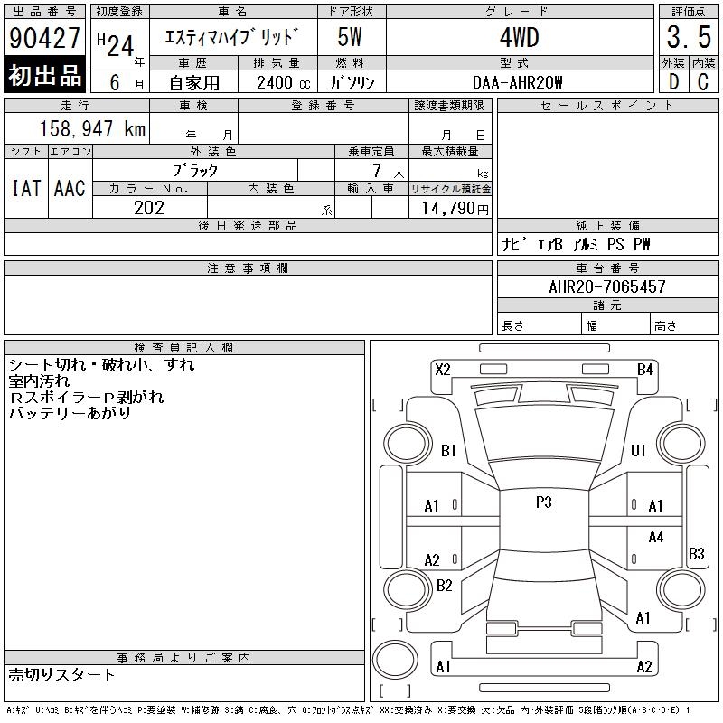 TOYOTA ESTIMA HYBRID 4WD - лот 90427
