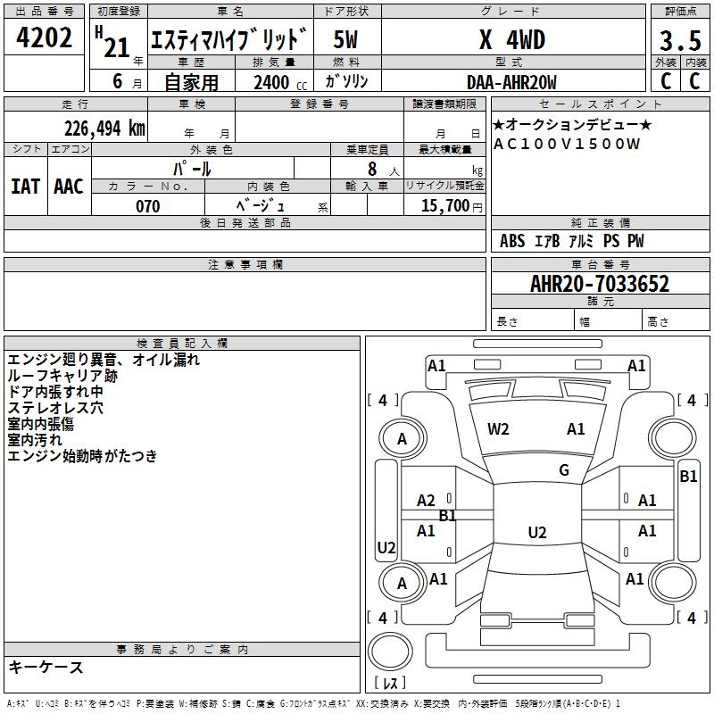 TOYOTA ESTIMA HYBRID X 4WD - лот 4202