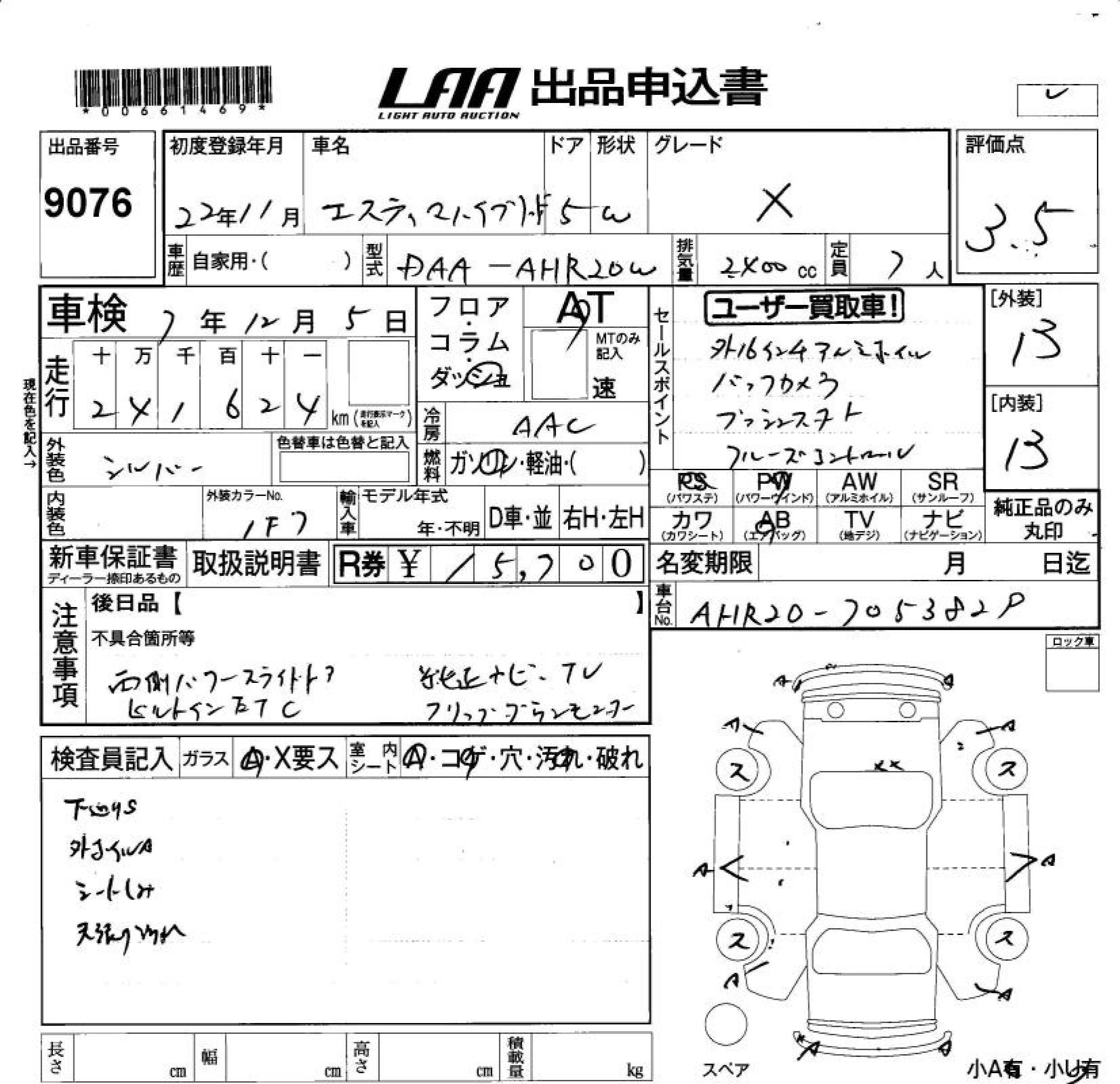 TOYOTA ESTIMA HYBRID X - лот 9076