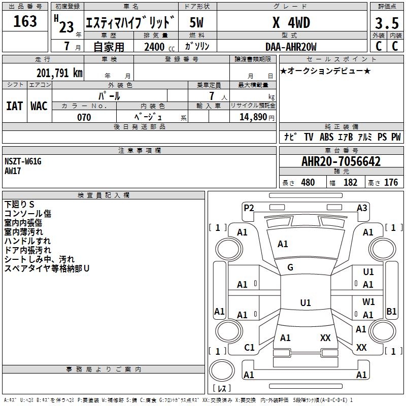 TOYOTA ESTIMA HYBRID X 4WD - лот 163