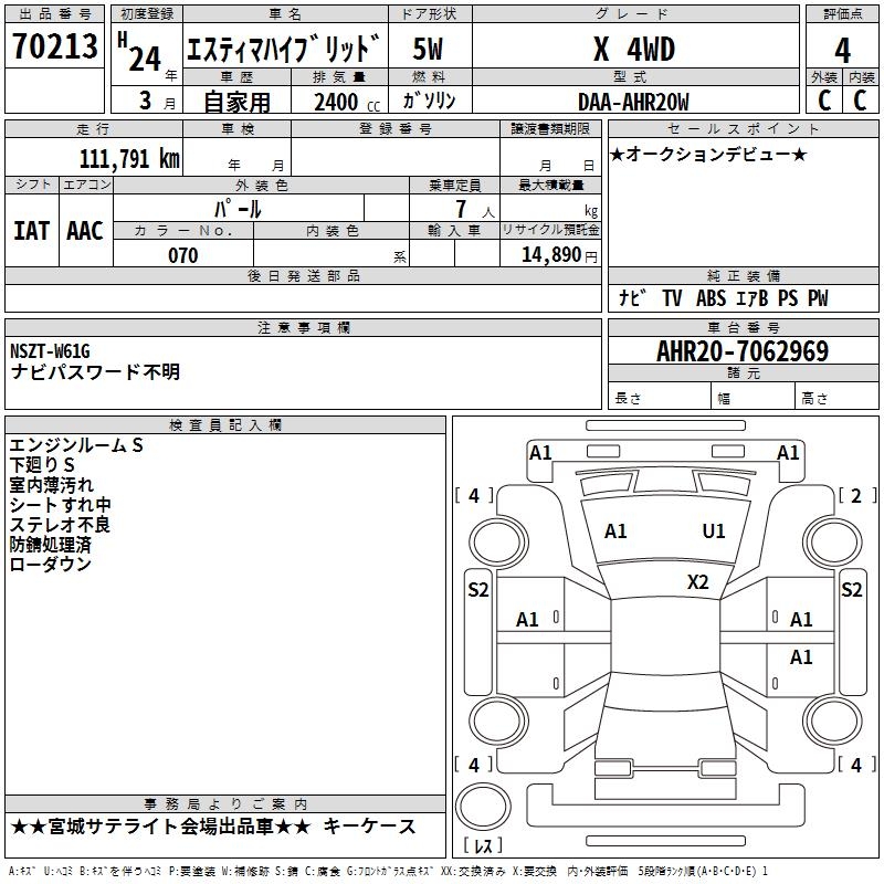 TOYOTA ESTIMA HYBRID X 4WD - лот 70213