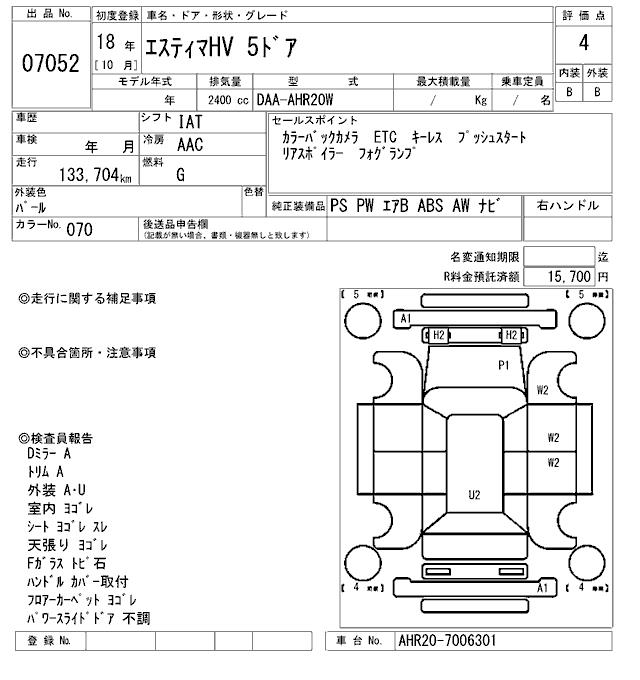 TOYOTA ESTIMA HYBRID - лот 7052