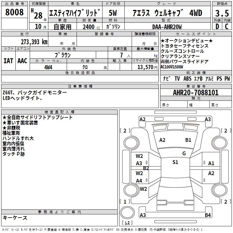 TOYOTA ESTIMA HYBRID AERAS WELL CAB 4WD - лот 8008