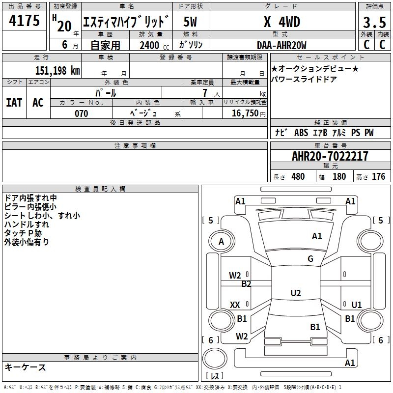 TOYOTA ESTIMA HYBRID X 4WD - лот 4175