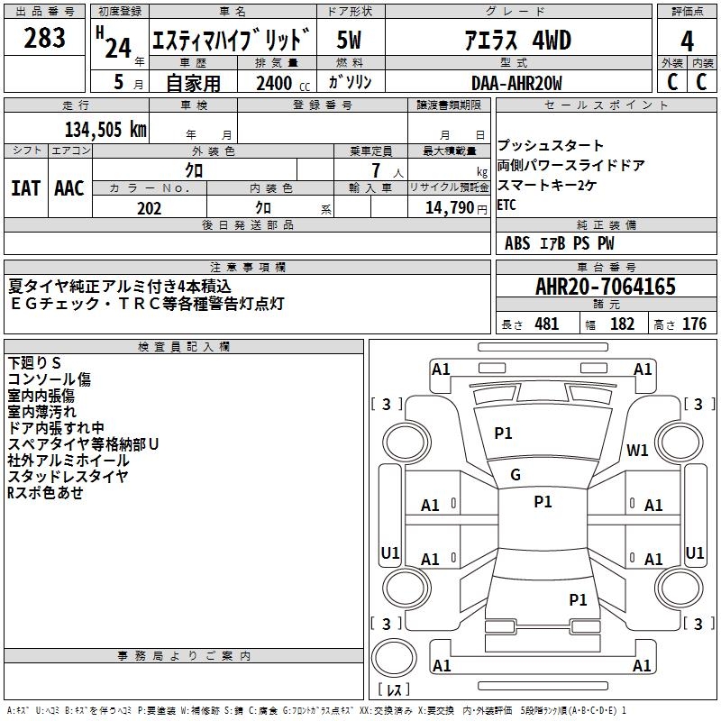 TOYOTA ESTIMA HYBRID AERAS 4WD - лот 283