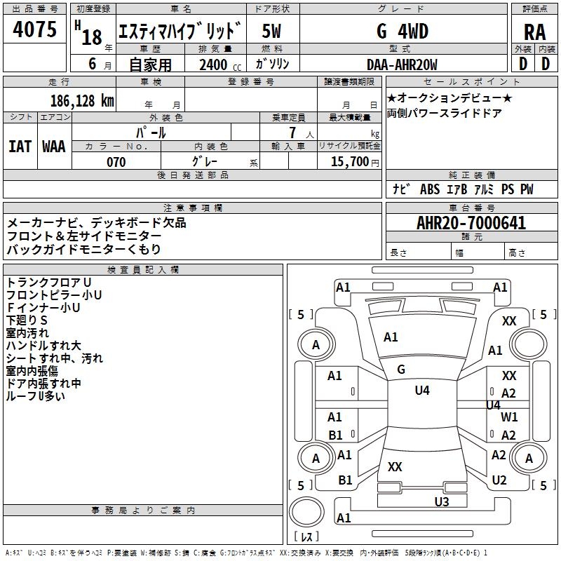 TOYOTA ESTIMA HYBRID G 4WD - лот 4075