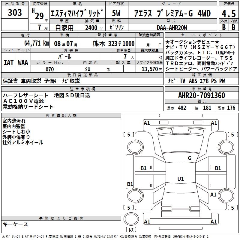 TOYOTA ESTIMA HYBRID AERAS PREMIUM -G 4WD - лот 303