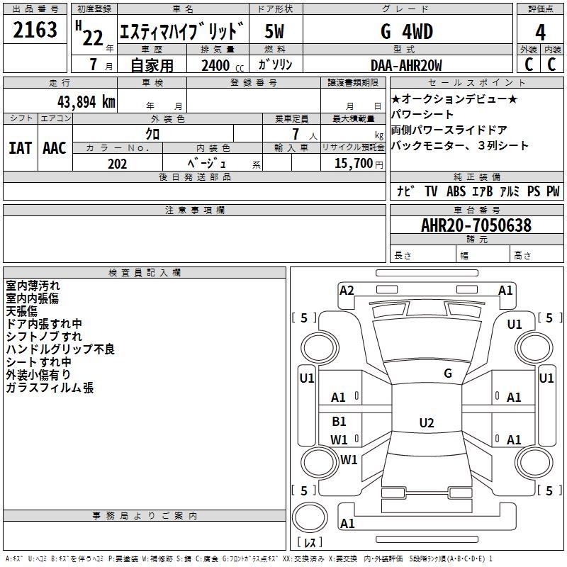 TOYOTA ESTIMA HYBRID G 4WD - лот 2163