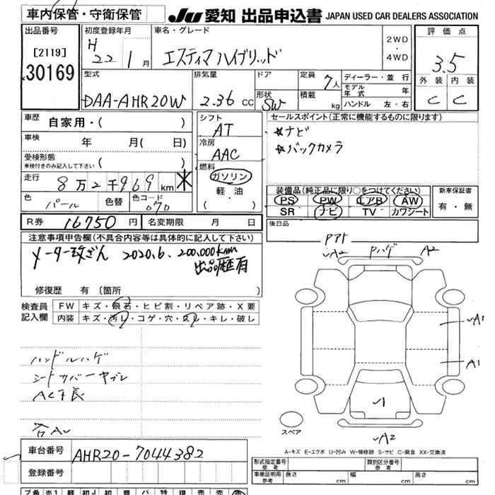 Все аукционы TOYOTA ESTIMA HYBRID