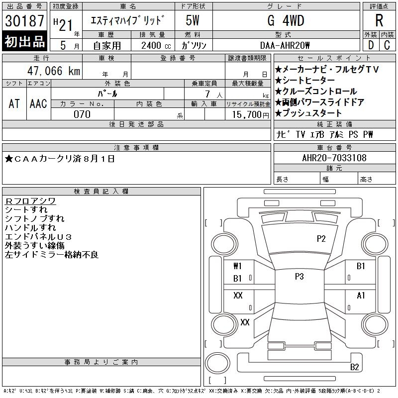 TOYOTA ESTIMA HYBRID G 4WD - лот 30187