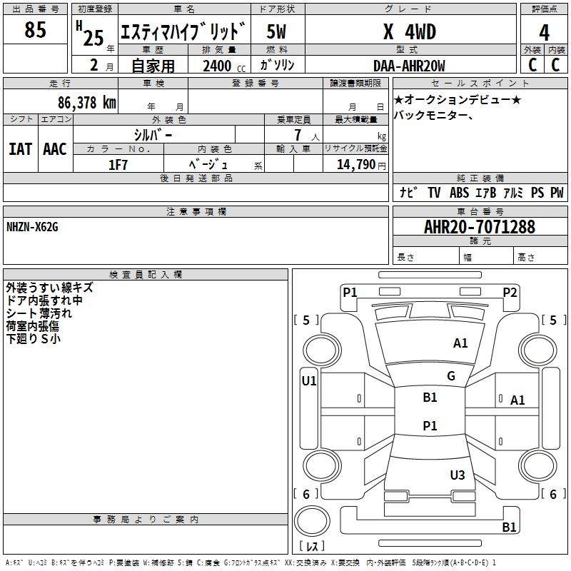 TOYOTA ESTIMA HYBRID X 4WD - лот 85