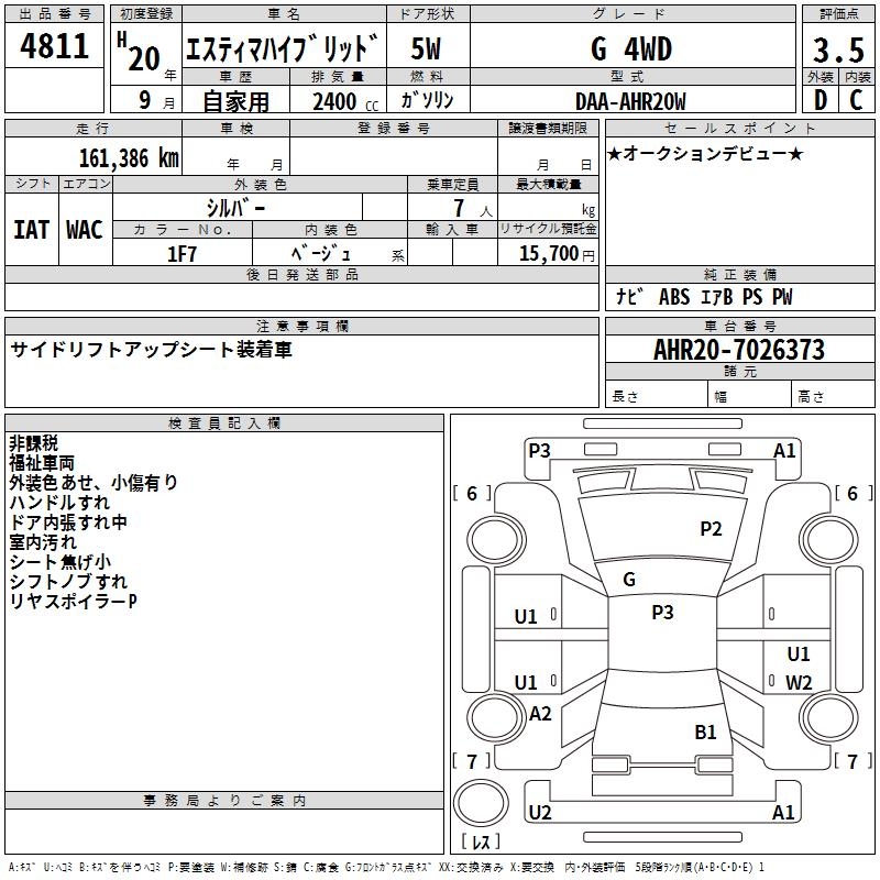TOYOTA ESTIMA HYBRID G 4WD - лот 4811