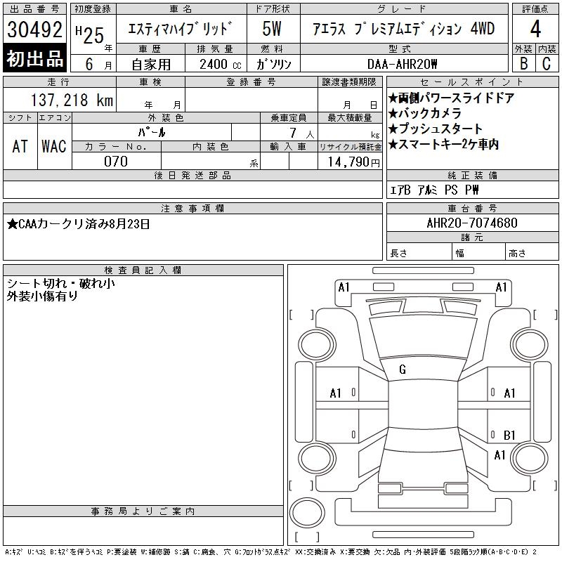 TOYOTA ESTIMA HYBRID AERAS PREMIUM EDI SI4WD - лот 30492