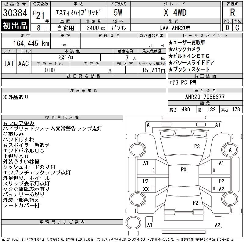 TOYOTA ESTIMA HYBRID X 4WD - лот 30384