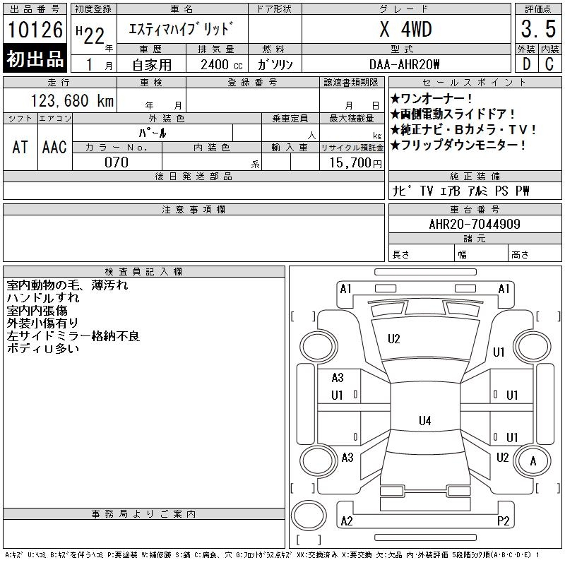 TOYOTA ESTIMA HYBRID X 4WD - лот 10126