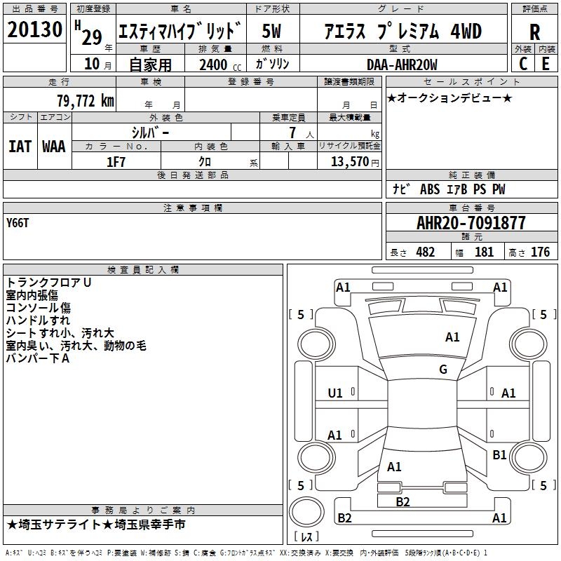 TOYOTA ESTIMA HYBRID AERAS PREMIUM 4WD - лот 20130