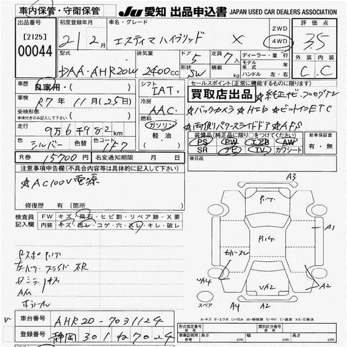 TOYOTA ESTIMA HYBRID X 4WD - лот 44