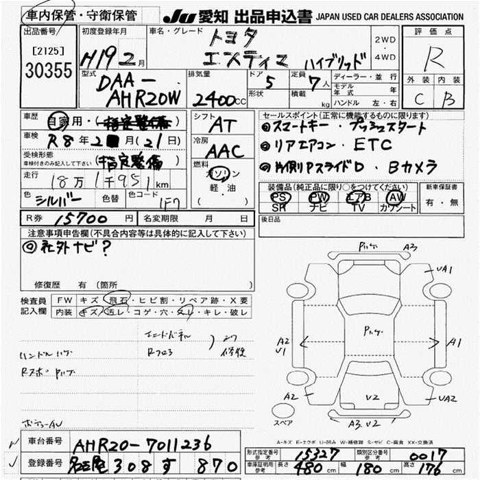 TOYOTA ESTIMA HYBRID - лот 30355