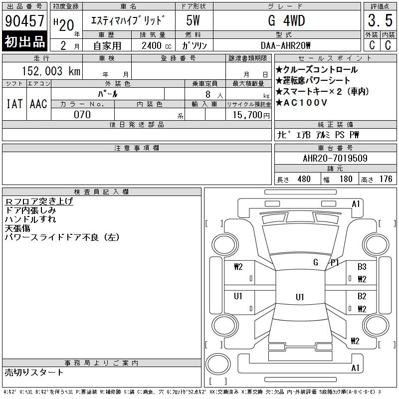 TOYOTA ESTIMA HYBRID G 4WD - лот 90457