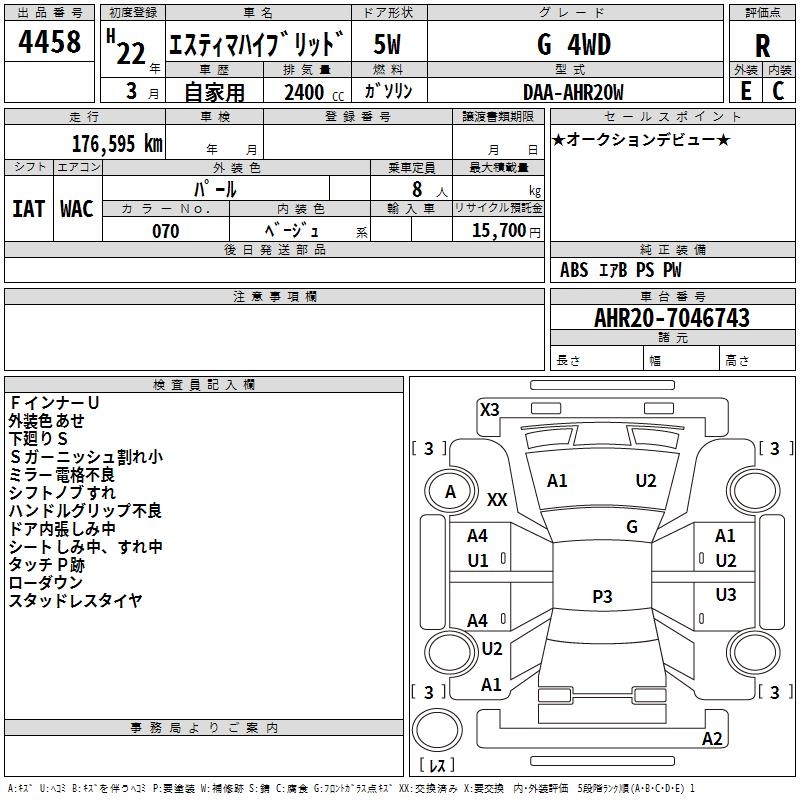 TOYOTA ESTIMA HYBRID G 4WD - лот 4458