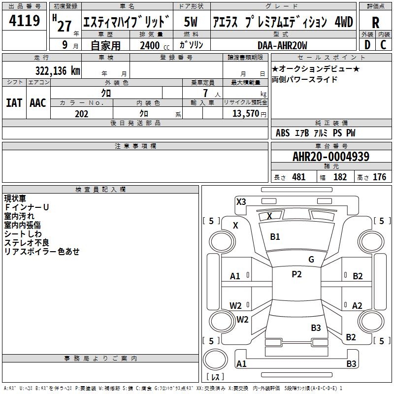 TOYOTA ESTIMA HYBRID AERAS PREMIUM EDI SI4WD - лот 4119