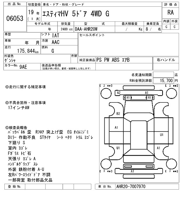 TOYOTA ESTIMA HYBRID G - лот 6053