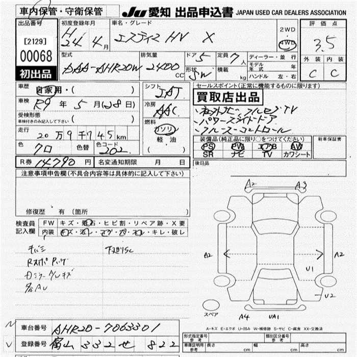 TOYOTA ESTIMA HYBRID X 4WD - лот 68
