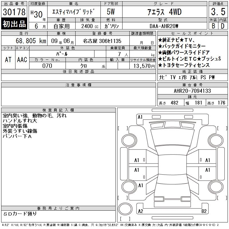 Все аукционы TOYOTA ESTIMA HYBRID