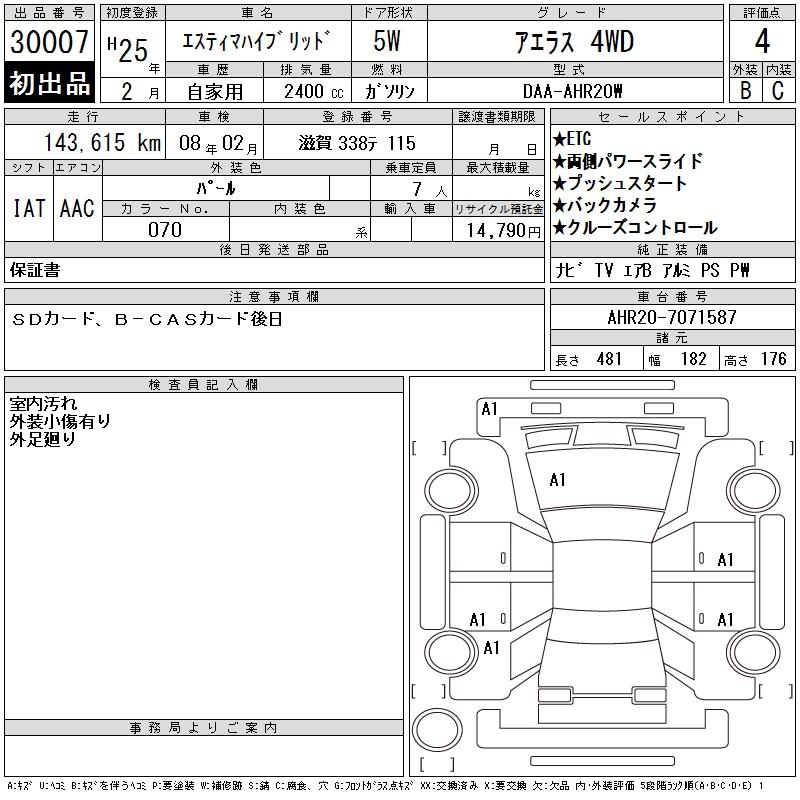 TOYOTA ESTIMA HYBRID - лот 30007