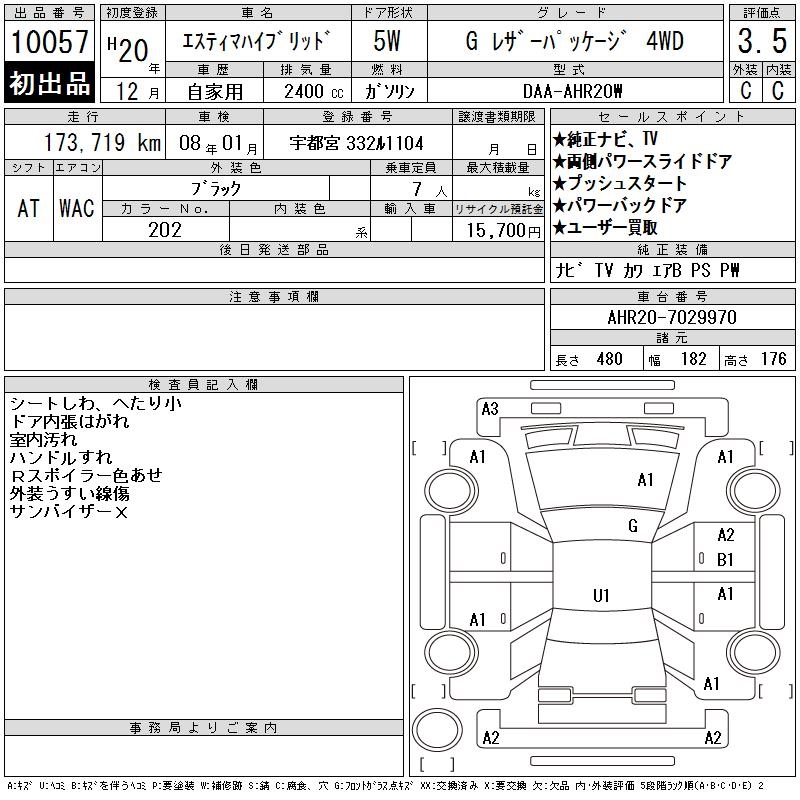 Все аукционы TOYOTA ESTIMA HYBRID
