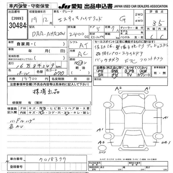 TOYOTA ESTIMA HYBRID - лот 30484