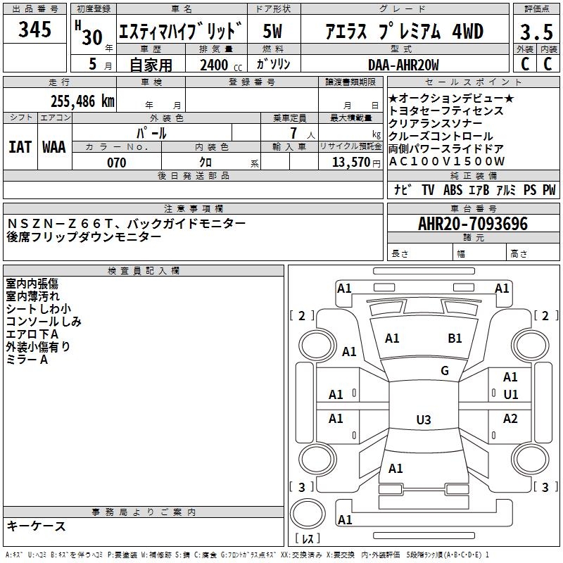 TOYOTA ESTIMA HYBRID - лот 345